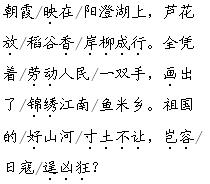 解析 本文表达了新四军伤病员保卫祖国河山、消灭日本侵略者的壮志豪情,因此情感的基调是高昂、激越、坚定、豪迈的。朗读时,要正确处理好句子中词语的停顿与连接,避免按照唱腔的节奏朗读。同时,要注意通过重音表达情感。