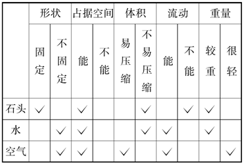 (1)C (2)A 解析:(1)空气与水和石头相比,相同体积的空气最轻,水较轻,石头最重。(2)当空气与水的重量相同时,它的体积是非常大的。