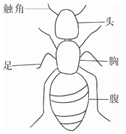 解析:本题考查蚂蚁和金鱼的身体结构。注意蚂蚁的胸部有三对足。金鱼背部有背鳍。