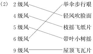 (6)B 解析:考查风速不同等级的特点,5级为中风,风速为8.0~10.7米/秒,小树轻摇。