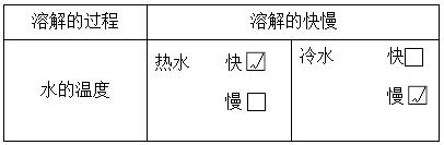(3)√ 解析:考查对比实验变量的控制,食盐质量的多少也会影响溶解的快慢,因此需要控制食盐的质量。