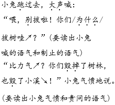解析 分角色表演一定要在分角色朗读的基础上进行。同学们先分好角色,每个人要把自己角色的语言熟练地背诵下来,要把说话者的语气和动作表现出来,同时注意和其他角色的前后衔(xián)接。表演时可以戴上头饰。