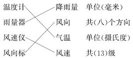 解析:温度计是测量温度的工具,单位是摄氏度,符号为“℃”;雨量器是测量降水量的工具,单位为毫米;风速仪是测量风速的工具,风速分为0~12级,共13级;风向标是测量风向的工具,风可分为东、南、西、北等八个方向。