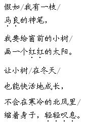 解析 这首诗歌共有四个小节,借“马良的神笔”,表达了对小树、小鸟、残疾人发自内心的关爱。这些关爱,显示了儿童一颗博大而纯真的心。每个小节第一句话都是写想画什么;第二句写为什么要画。按照这样的顺序来背诵,就会容易得多。