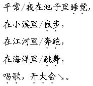 解析 本文采用拟人的手法,以第一人称叙述,读起来亲切自然。全篇应读得亲切、舒缓,各段各句应富有变化。第1、2自然段可以读得“神秘”点;第3、4自然段要读得有变化。如,“我在池子里睡觉”,声音较轻,以显安静;“在小溪里散步”,声音舒缓,以显悠闲。