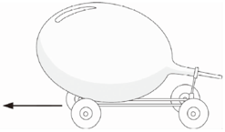 (3)当把吹足了气的气球放开时,气球内的气体就会从喷气口向外喷出。被喷出的气体产生一个反方向的力,小车就是在这个力的作用下运动起来的。
