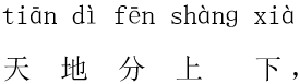 答案 一 二/三 四 五△↘,金 木/水 火 土△↘。天 地/分 上