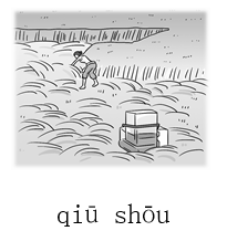 qiào zhe wěi bɑ/yáo ɑ yáo.