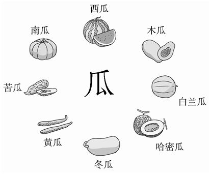 解析 本题中有八个词语和八个图,我们要把图和词语一一对应起来,把认识事物和识字结合起来,读一读这些事物的名称,认一认它们的名字。在读这些词语的时候,我们会发现,它们的名字中都有一个相同的字——瓜。