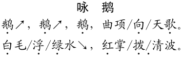 解析 背诵要在熟读的基础上进行。先将古诗读熟,了解诗歌的内容。诗人先写鹅的叫声,再写鹅叫的姿态,最后写了鹅游水时的动作、姿态。了解了内容后,就可以按诗人的描写顺序来背诵了。
