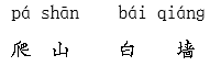 解析 朗读时,注意易读错的字。“墙”是三拼音节,读qiánɡ。书写时,不但要注意写字姿势,还要注意易错的字。“爬”中的“巴”写在捺上边;“园”先写竖、横折钩,再写“元”,最后写横;“良”第一笔是点,不可丢。