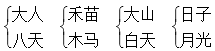 【解析】例子中将“小”添上一笔变成一个新字“少”,因此此题是要求在给出的字上加一笔,变成新字。