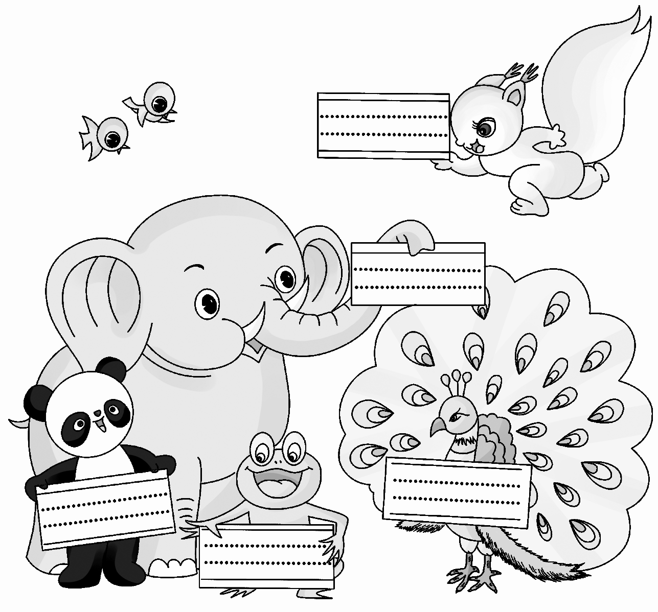答案 大象(dà xiànɡ) 松鼠(sōnɡ shǔ) 熊猫(xiónɡ māo) 孔雀(kǒnɡ què) 青蛙(qīnɡ wā)