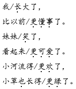 解析 这三个句子都是带有“更”字的句子,读的时候注意“更懂事、更可爱、更欢、更绿”等词语要重读。