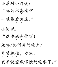 解析 本文是一则寓言,寓意含蓄,要用比较舒缓的语调来读。分角色朗读时,要读出小河和小草的感激之情和谦虚。对小河和小草,我们要读出喜爱之情。