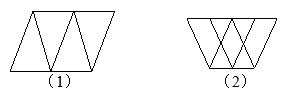 (1)由2个三角形组成的平行四边形有3个,由4个三角形组成的平行四边形有1个,一共有4个平行四边形;