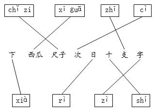 解析 这是一个综合训练拼读的练习。这些词语中包含两拼音节、三拼音节、整体认读音节、平舌音、翘舌音和轻声音节。拼读时要注意:jiā zi的第二个音节读轻声;xiā、jiā、huā、qiǎ是三拼音节;zi、chǐ是整体认读音节,不能拼读;zi是平舌音;chǐ是翘舌音;jú、qū的韵母是ü,不是u。