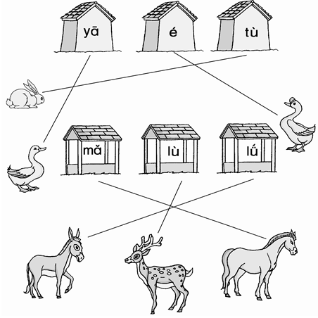 解析 同学们先看看图,再读读音节,帮动物们找到家。照