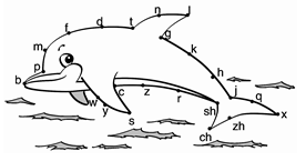 解析 我们先用卡片认读23个声母,再读一读“复习二”中按顺序排列的声母,最后从b开始按声母顺序连线,看看连成了什么图形。