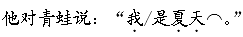解析 同学们要先了解课文内容,知道前两小节分别是草芽对小鸟说、荷叶对青蛙说,而且都是“我是……”这样相同的句式。后两小节分别是谷穗和雪人说,说的句式也基本相同,边读边做动作,这样很快就能记住了。