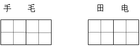 解析 这两排字非常有趣,每组中两个字的字形非常接近。在观察中同学们不难发现:上面一排每组的第一个字比第二个字少一笔;下面一排每组两个字笔画数相同,但有一个笔画不同。同学们一定要按书写要求在田字格中书写,把字写漂亮。