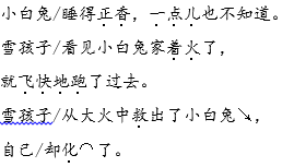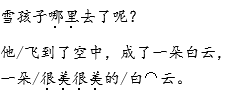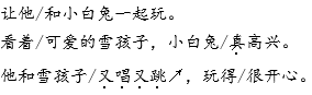 解析 这篇课文与以往学过的课文有所不同,那就是课文没有注音,所以在朗读时,同学们一定要读准字音,正确处理轻声。有读不准的地方一定要查字典或问老师和同学。在读准字音的基础上,图文对照逐段练读,要读出雪地、云朵的美丽,小白兔的快乐与伤心,雪孩子的勇敢与善良。