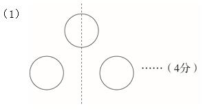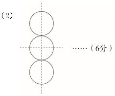 分析:(1)三个圆摆放成等腰三角形(不含等边三角形)的形状,这时图形只有一条对称轴。(2)三个圆竖直并列摆放或并排水平摆放,这时的图形只有两条对称轴。(3)三个圆摆成等边三角形,这时的图形有三条对称轴。