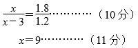 (3)解:设这棵杨树的树高是x m,则影长是(x-3)m。…………(5分)