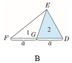 2.分析:给图形A画一条直径(如图所示),分割后,图1和图2的直径相等,那么图1和图2的面积和周长都相等,所以空白部分和阴影部分的周长和面积都相等。在图形B中,三角形EFG和三角形EGD有一条公共边EG,有两条边相等,即FG=GD,第三条边EF>ED,所以空白部分与阴影部分的周长不相等。但两个三角形的底相等,高也相等,所以空白部分与阴影部分的面积相等。在图形C中,正方形的4条边相等,图中空白部分与阴影部分的弧线为共用部分,所以空白部分与阴影部分的周长相等,但面积不相等。