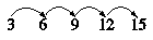 3的倍数:3,6,9,12,15