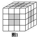 (1)分析:这个正方体是由64个小正方体组成的,将这个正方体的表面涂上红色,可以发现正方体的每个面都有4个小正方体的1个面涂上了红色(图1中的阴影部分),如图1,正方体一共有6个面,所以1个面涂红色的小正方体有4×6=24(个)。