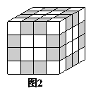 (2)分析:通过观察图2可以发现,正方体的前、后两面各有8个小正方体的2个面涂上了红色,左、右两面各有4个小正方体的2个面涂上了红色(图2中的阴影部分)。所以2个面涂红色的小正方体有8×2+4×2=24(个)。