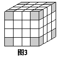 (3)分析:通过观察图3可以发现,正方体的8个顶点的小正方体3个面涂上了红色(图3中的阴影部分)。所以3个面涂红色的小正方体有8个。