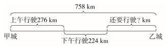 上午行驶完剩下的路程:758-276=482(km) ……(1分)