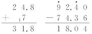 分析:从题中可以看出被减数是一个一位小数,减数是一个两位小数。被减数的百分位可用0占位,由0-□=4可知,被减数的百分位不够减,所以要向前一位借1当10,差的百分位上的数字是4,想:10-( )=4,可推出减数百分位上的数字是6;被减数十分位上的数字被借走1后剩3,3减几都不等于8,不够减,所以也要向前一位借1当10,想:13-( )=8,可推出减数十分位上的数字是5;被减数个位上的数字被借走了1,想:( )-1-2=1,可推出被减数个位上的数字是4。