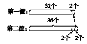分析:根据题意先求出第一筐和第二筐中的苹果个数相差多少,用减法计算,列式为36-32=4(个),再把相差的苹果个数平均分成2份,其中的一份就是从第二筐中拿出放入第一筐中的苹果个数。如下图: