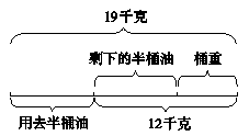 分析:由已知条件可知,一桶油连桶共重19千克,用去半桶油后,连桶共重12千克,这12千克中包含了剩下的半桶油和桶的质量。画图表示如下: