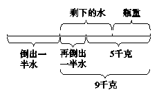 可以看出剩下的水的一半重9-5=4(千克),那么剩下的水的质量就是4×2=8(千克)或2×4=8(千克),这样就可以求出整瓶水的质量是8×2=16(千克)或2×8=16(千克)。