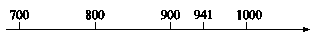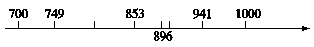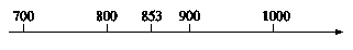 700和800中间为750,800和900中间为850,900和1000中间为950。看所给的每个数分别接近多少。853接近850,应写在850的右侧,如图: