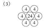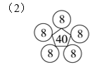 第一个图形:36周围有4个○;第二个图形:40周围有5个○;第三个图形:24周围有6个○。因为每个数周围的○里填的是相同的数,而且○里填的数相加的和等于中间的数,就是把中间的数平均分成○的个数份,那么就可以把中间的数看作被除数,周围○的个数看作除数。即36÷4=9,第一个图形中的○里填的都是9;40÷5=8,第二个图形中的○里填的都是8;24÷6=4,第三个图形中的○里填的都是4。