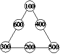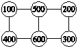 (2)分析:要使每条边上3个数的和都是1000,就要从6个数中选出3个数相加等于1000。200+300+500=1000,400+500+100=1000,600+300+100=1000,这三个式子中重复出现的数有100、300、500,因为三角形三个顶点处的