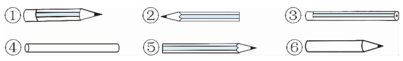 提示:图中共有6支铅笔,有的完整,有的被削过;有的长,有的短;有的带橡皮,有的不带橡皮;有的有条纹,有的没有条纹。可以根据这些特征进行分组。先将6支铅笔编号(如下图所示),再分组。
