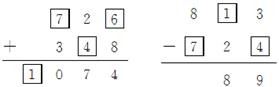 分析:观察算式,被减数的百位上是7,并且7-A=A,这样的算式是不存在的,可以推断出7是被前一位借走1的,所以是6-A=A,A=3;十位上15-B=B,从而也可以推断出被减数的十位上的5也是被前一位借走1的,所以得到14-B=B,B=7;剩下个位,根据之前的推断,个位是从十位借走1进行计算的,即18-C=C, C=9.所以A+B+C=3+7+9=19。
