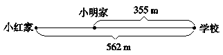 观察可知,小明家到小红家的距离是小红家到学校的距离与小明家到学校的距离之差。即562-355=207(m)。
