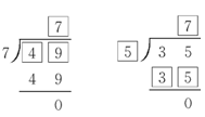 被除数是两位数,除数是7,商是一位数,余数为0。除数和商乘得的积为49,所以想7的口诀7×7=49。即商是7,被除数是49。