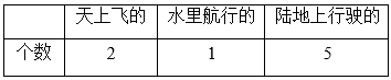 1.天上飞的:①⑧ 水里航行的:② 陆地上行驶的:③④⑤⑥⑦