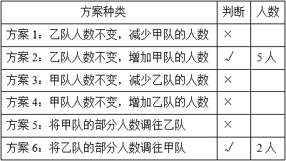 答:甲队减少1人,乙队减少4人。…………(11分)