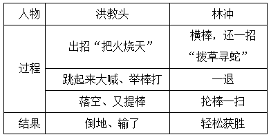 2.在选文中分别找到对洪教头和林冲的描写,进行提炼即可。