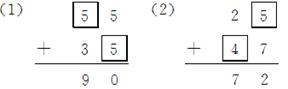 分析:(1)个位上5+□=0,说明个位向十位进1了,即5+□=10,□=5;十位上有个位进上来的1,所以□+3+1=9,□=9-3-1=5。