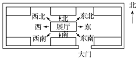 分析:如下图所示,以展厅为中心,画出八个方向,然后根据描述即可得出答案。